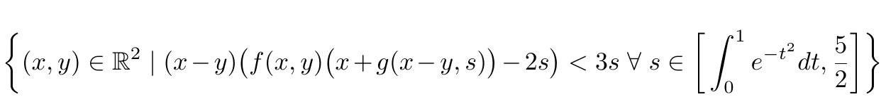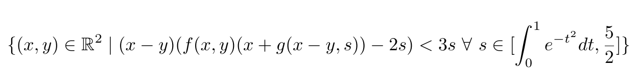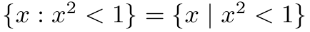 When defining sets, the symbols : and | are often used to mean “such that” or “satisfying”: . Whichever “such that symbol” you choose, it should be typeset as a relational operator, so as to get typeset with a thin space on both sides. As seen above,