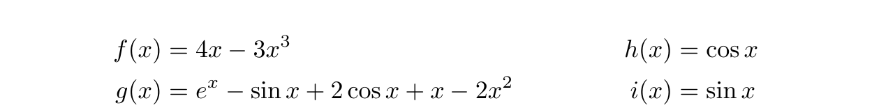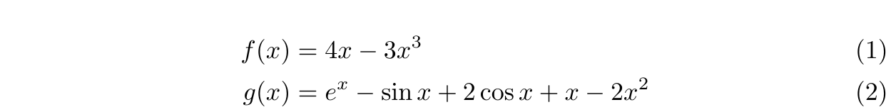 environment in this example has two numbered lines and two columns; the first column is right-aligned and the second left-aligned. The first column consists of two embedded aligned