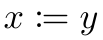 Make sure you use these symbols correctly! The expression means “x is a new symbol, and it has the same value as y”, and not the opposite! Thus,