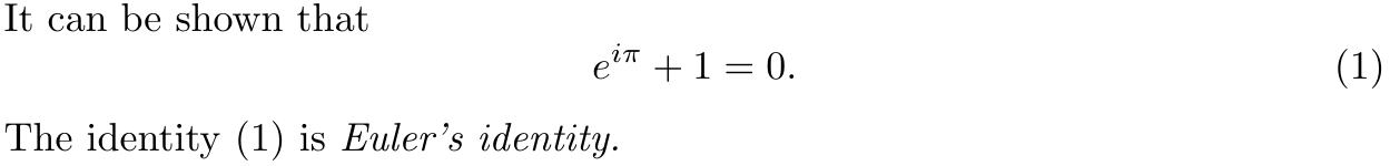 for numbered mathematical displays (a display is a centered mathematical expression). Each of these have a “starred” variant (equation*